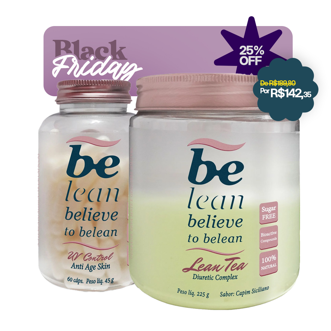 A Black Friday da Belean traz a dupla perfeita para quem quer se preparar para o verão! Leve o Lean Tea (Diuretic Complex) junto com o UV Control (Anti Age Skin) com um desconto exclusivo de 25%.